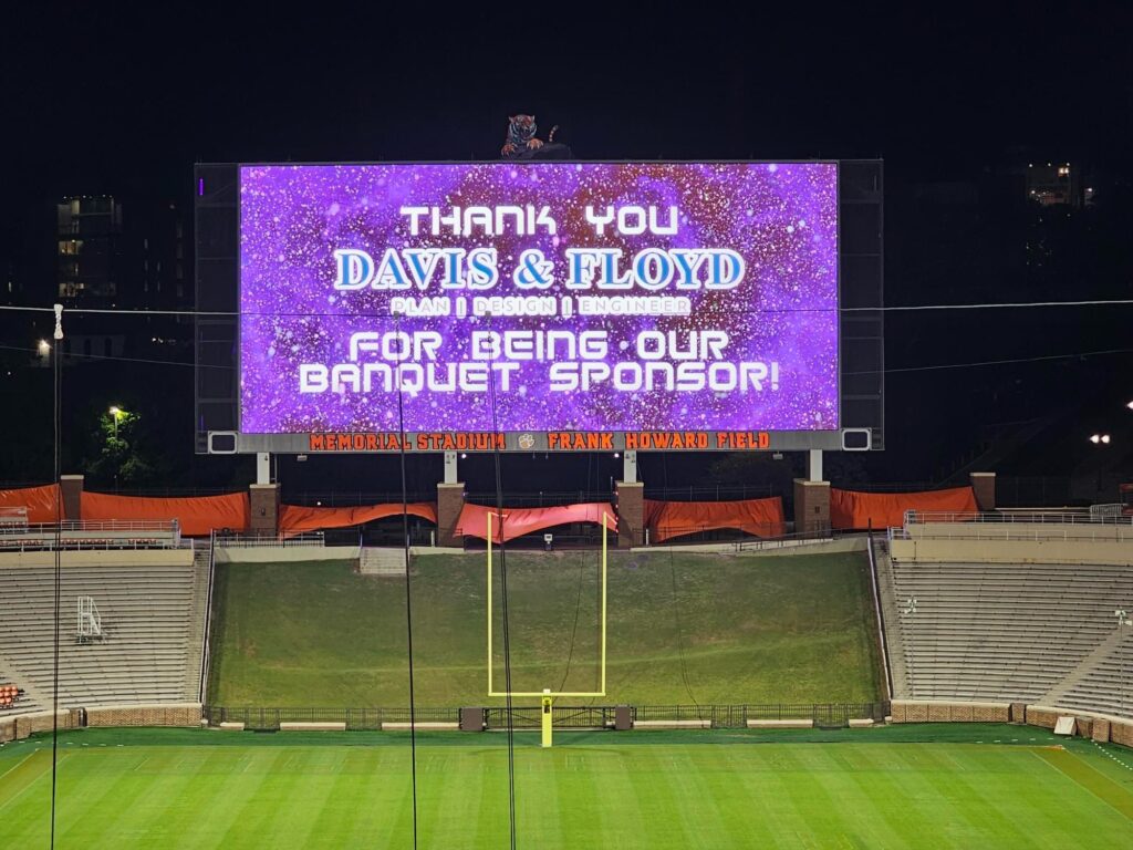 The symposium concluded with a celebratory Awards Banquet on Saturday night, held in the West End Zone Club of Memorial Stadium. The evening was full of Tiger pride and recognition, highlighted by keynote remarks from ASCE President-Elect Marsha Anderson Bomar, who inspired students and guests alike with her vision for the future of civil engineering. Throughout the night, sponsors and student teams were featured on the stadium’s jumbo tron, overlooking a football field temporarily transformed into a baseball diamond for the upcoming Savannah Bananas showcase. The space-themed awards ceremony carried the weekend’s galactic flair into the final celebration, with spirited photos taken against the backdrop of Death Valley and an atmosphere of pride, connection, and celebration.