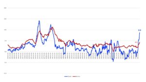 On Thursday, the Bureau of Labor Statistics (BLS) released the January Consumer Price Index Summary. The reported inflation numbers were within market expectations. Overall inflation showed that year-over-year prices have increased at 7.5 percent. As has been widely reported, this is the highest inflation has been since 1982. In our last post on inflation, we highlighted how the increase in M2 may be fueling the rise in prices. In this post, we will discuss how the change in the composition of demand is contributing to higher inflation. The figure below depicts the CPI inflation and another measure of inflation PCE-inflation (Personal Consumption Expenditures).