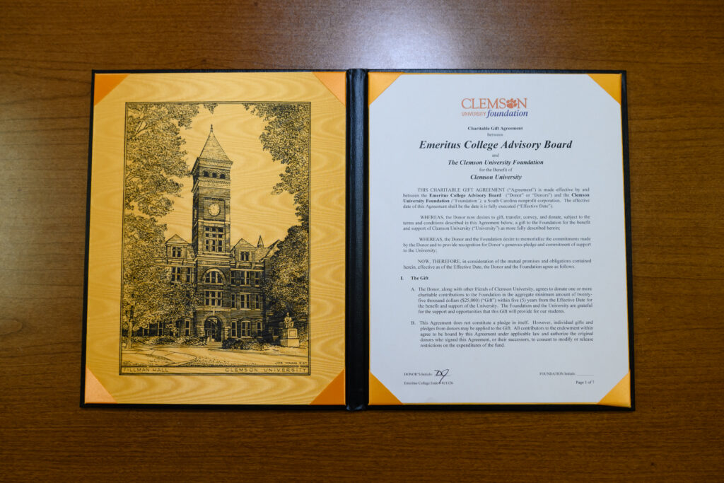 Many emeritus faculty members steadily render valuable service to the Emeritus College and Clemson University without compensation. The designation of Emeritus College Fellow has been created to honor those individuals.