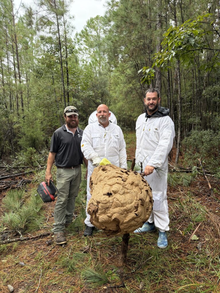 What are we doing? With the Support of USDA APHIS, Clemson’s Honeybee Protection Program is surveying for YLH focusing on detecting workers and finding nests within a wide area around the initial detections. Baited traps are used to initially detect hornets, followed by tracking live hornets to narrow down the nest search area. Eradication focuses on locating and destroying nests including queens. Nests should ideally be destroyed by late summer or very early fall before new queens are actively mating and dispersing. Nest destruction will continue throughout the fall and early winter.
