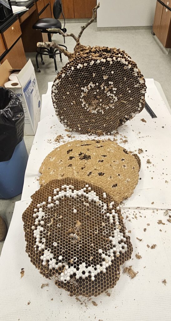 The nest removed from York County was dissected on January 15, 2026, to study the life stage of the nest, number of YLH individuals, and the reproductive status of the hornets. Information from the dissection will be provided as soon as the data is available.