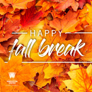 …that we’re staying open for Fall Break? Come by between 8 a.m. and 5 p.m. Monday and Tuesday!